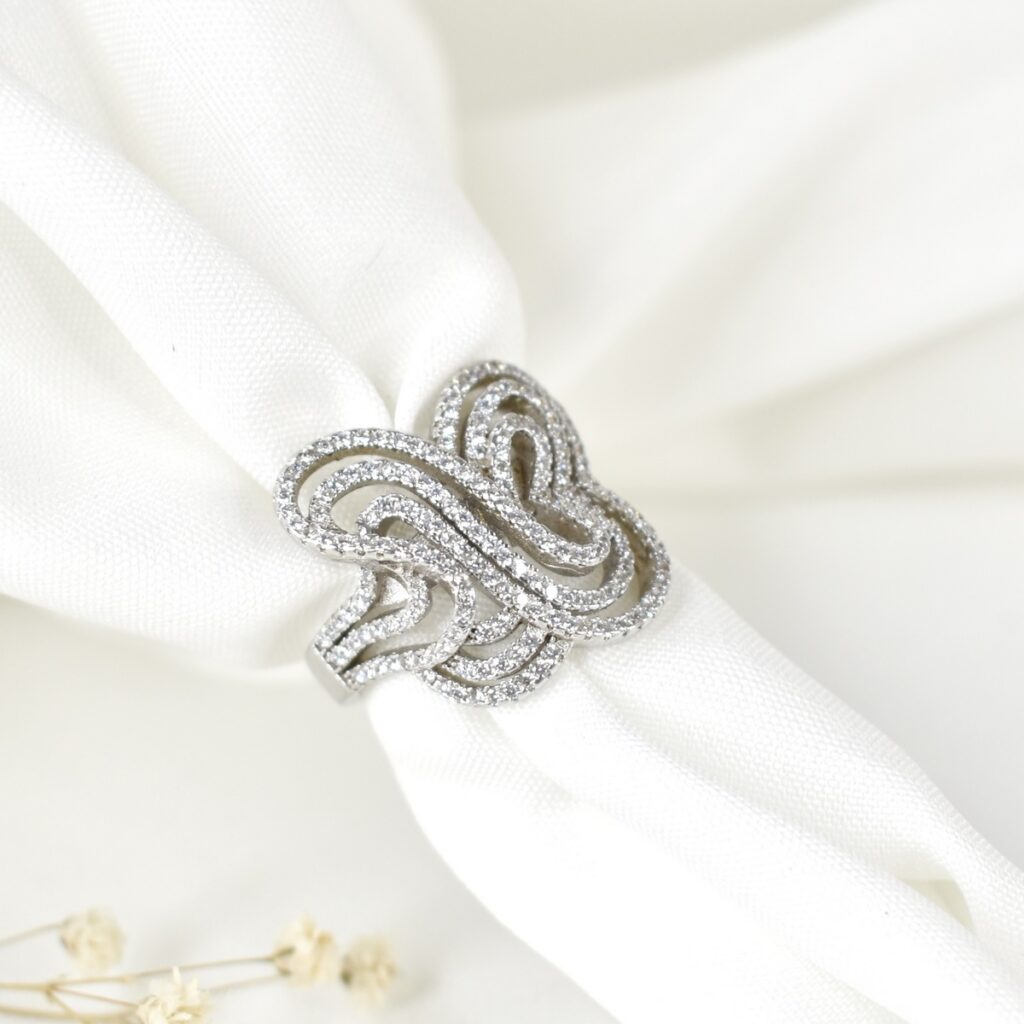 انگشتر نقره ایتالیایی زنانه طرح دار جواهری کد ۱۱۲۹